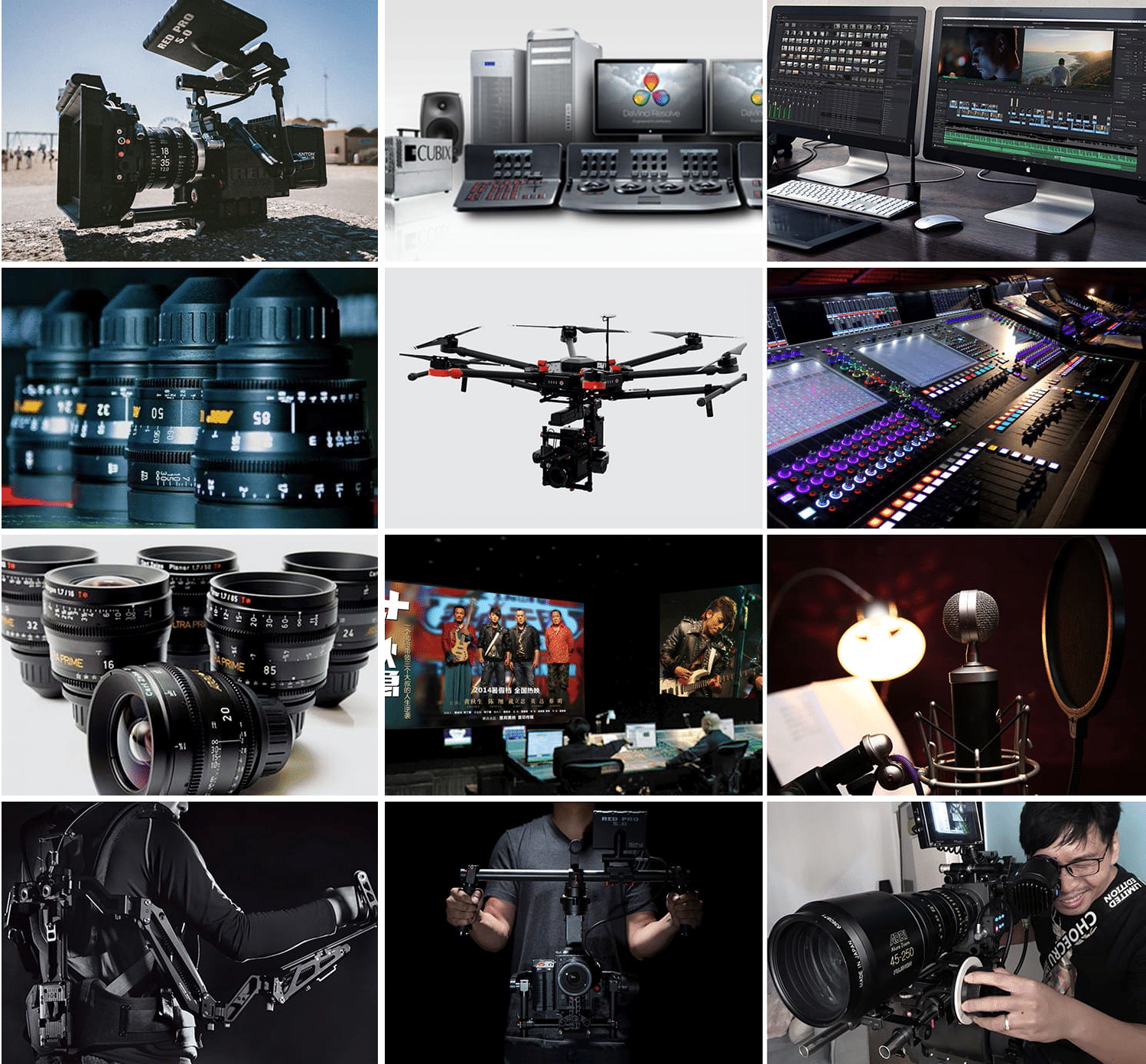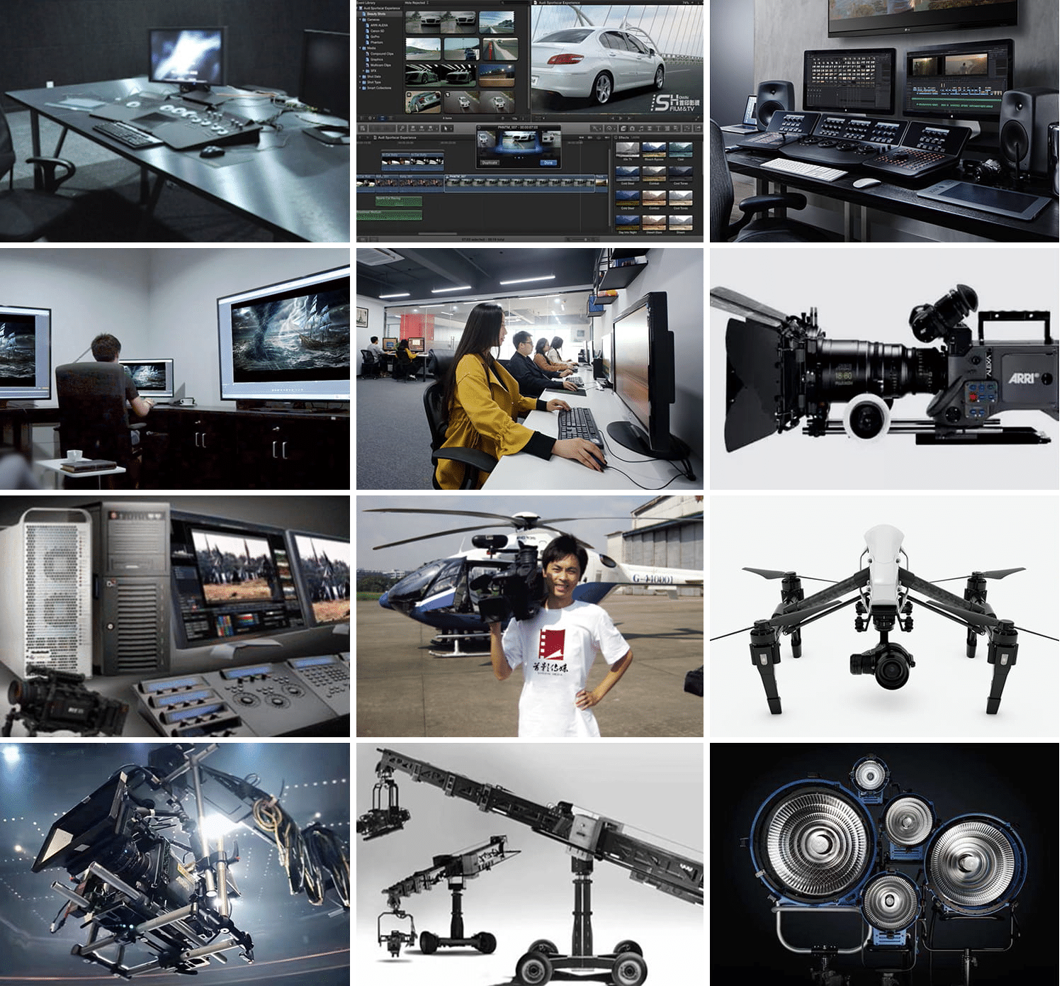 集團旗下各子公司都分別購置了電影數(shù)碼攝影機、航拍無人機、蘋果4K剪輯系統(tǒng)、動畫制作系統(tǒng)、特效包裝系統(tǒng)、阿萊燈光、軌道、搖臂等全套高端制作設(shè)備,為創(chuàng)意方案的完美執(zhí)行提供了有力支撐,也有效降低了客戶影片的制作成本。